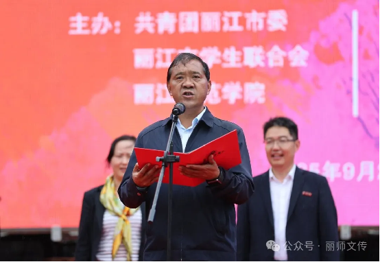 丽江师范学院党委副书记、校长陈本辉致欢迎辞。他代表学校热烈欢迎莅临现场的领导和嘉宾,感谢一直关心和支持丽师的单位及兄弟院校,明确丽江建设教师教育特色鲜明的地方应用型大学的办学目标,表态将为丽江发展贡献丽师力量、书写发展新篇章,期盼各方继续支持丽师发展,并携手办好艺术节并打造丽江高校青年活力名片。随后,他宣布活动正式开幕。
